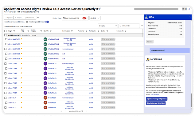 Detect threats earlier, enforce least privilege at scale, and streamline governance with AIDA — the intelligence layer that applies advanced AI and machine learning to your unified identity data layer.